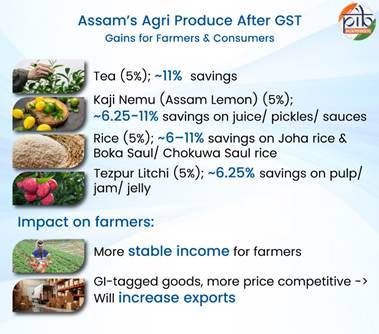 In NEWS: Assam’s GI farm basket gains with Joha Rice and Boka Saul rice and Kaji Nemu products and Tezpur Litchi see ~6–11% savings, lifting demand and farm incomes