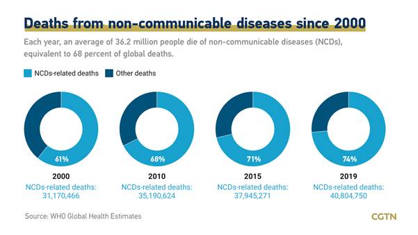 - Non-Communicable Diseases (NCDs), including heart disease, stroke, and diabetes, now account for nearly two-thirds of global deaths, surpassing infections for the first time.