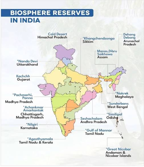 There are a total of 18 biosphere reserves in India, but only 13 are part of the UNESCO World Network of Biosphere Reserves under the MAB programme. Cold Desert becomes India’s 13th UNESCO Biosphere Reserve